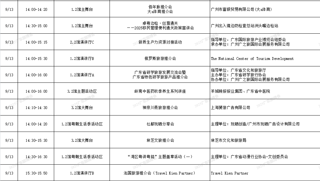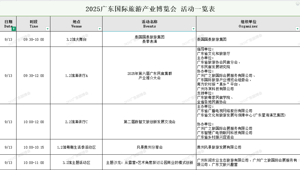 此外,旅博会期间还将开展10余场“广东文旅产业派”系列专业活动及资源对接活动,内容覆盖文旅消费新业态、数智文旅创新、研学旅游开发、民宿集群运营等领域。