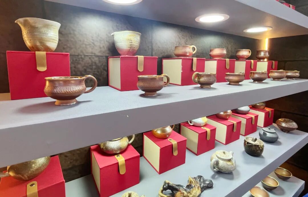 精品文创区亮点纷呈。科艺公司推出风度阁微缩模型、榫卯八音盒,十步芳草园展示蓝晒系列与香草手工皂,翁源兰花打造沉浸式花艺空间,呈现“兰花+文旅+电商”产业新形态,星河生物呈现菌菇制品,体现现代农业科技成就,南雄珠玑古巷姓氏文创(铜彩书签、陶瓷茶杯)彰显千年底蕴。